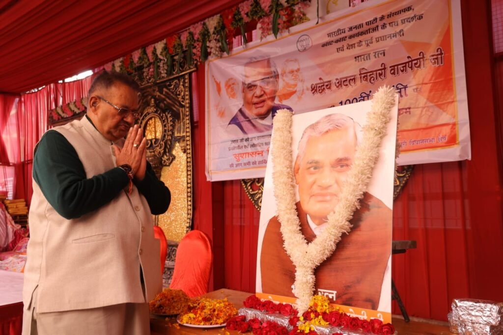 पूर्व प्रधानमंत्री, भारत रत्न स्वर्गीय अटल बिहारी वाजपेयी की जयंती को सुशासन दिवस के रूप में मनाते हुए उन्हें श्रद्धासुमन अर्पित करते कैबिनेट मंत्री गणेश जोशी