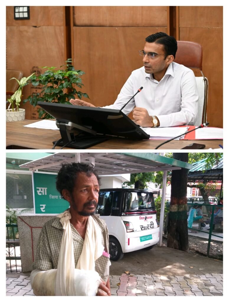 जिलाधिकारी सविन बंसल ने पूरी संवेदना के साथ असहाय, अनाथ राजू की मार्मिक व्यथा सुनी। राजू के अधजले हाथ के असीमित और असहनीय पीड़ा को महसूस किया और बिना वक्त जाया करते राजू के उपचार हेतु फोन पर चिकित्सकों से परामर्श किया और राजू को तत्काल प्रशासन के सारथी वाहन से चिकित्सक के पास पहुंचाया। जहां अब राजू के अधजले हाथ का इलाज हो रहा है।