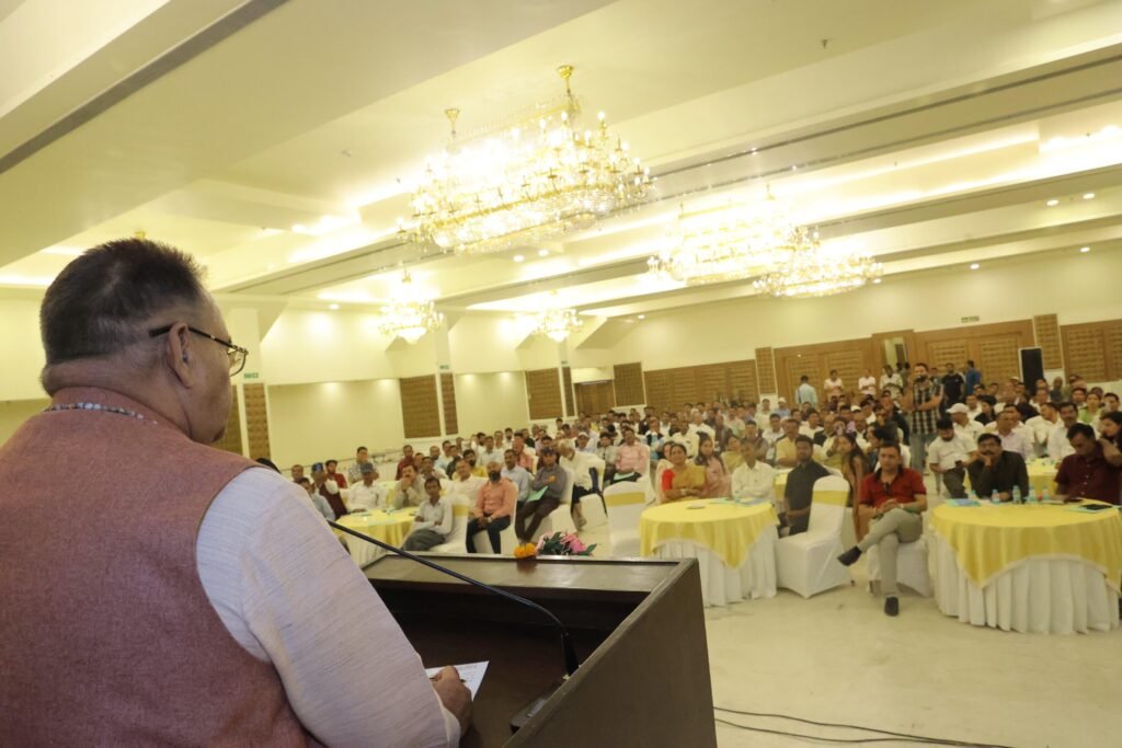कृषकों एवं पौधशाला स्वामियों के साथ समन्वय संगोष्ठी कार्यक्रम में कृषकों से संवाद करते कृषि मंत्री गणेश जोशी